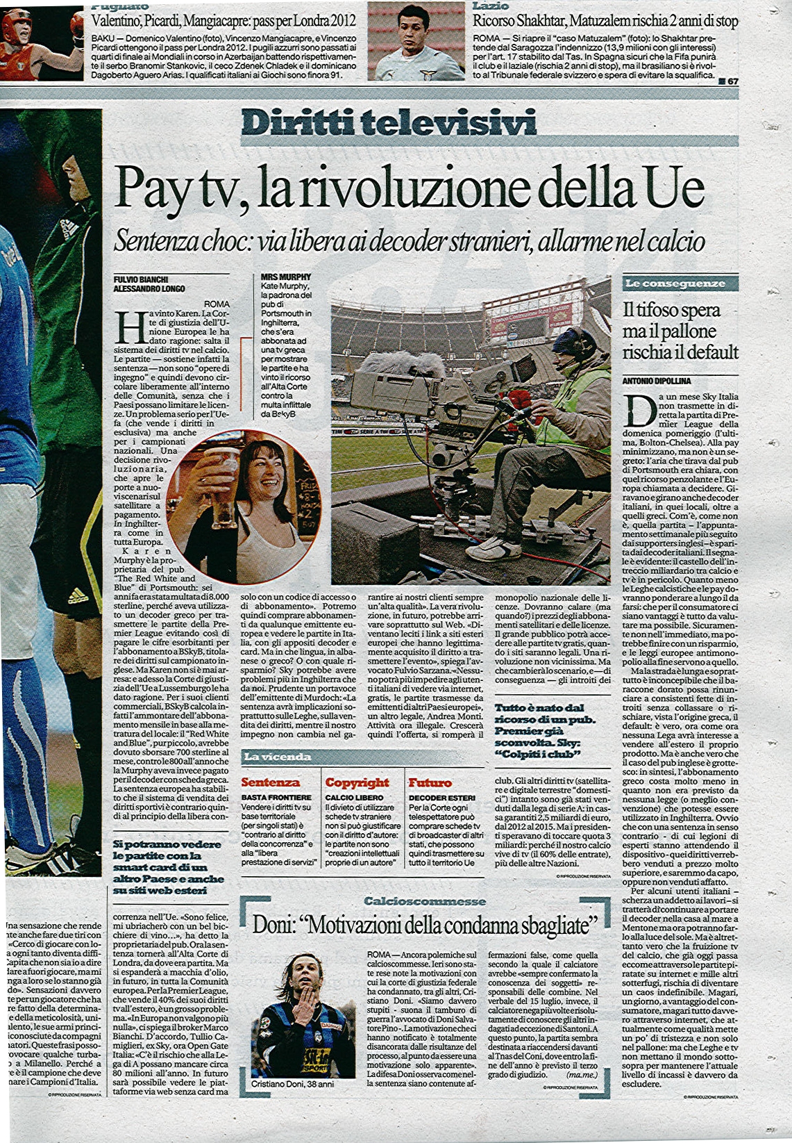 Il tema è la sentenza della Corte di Giustizia in tema di diritti televisivi ed esclusive territoriali.